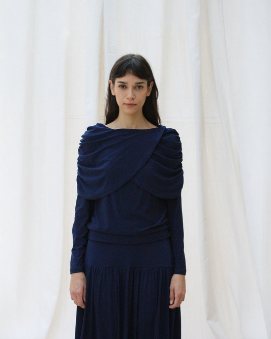 Wave long sleeve top in navy