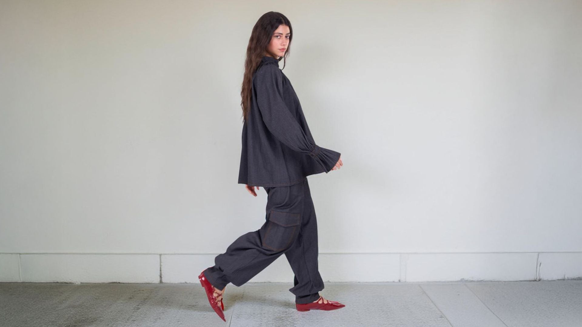 Parachute pants in black denim